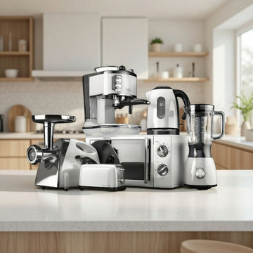 Upgrade your kitchen with timeless, professional-grade appliances that blend form and function beautifully. Featuring durable meat grinders, powerful blenders, precision coffee makers, rapid-boil kettles, elegant toasters, and multi-purpose food processors — all in refined silver and stainless tones.