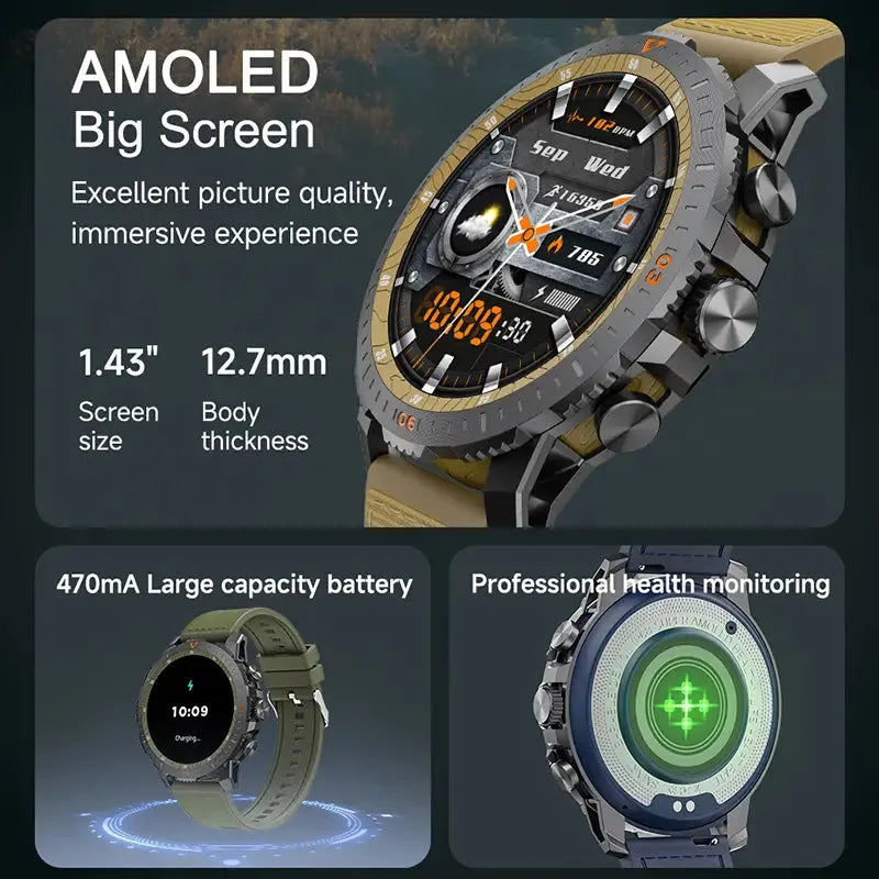 AMOLED Big Screen: Features a 1.43-inch AMOLED display with a 12.7mm body thickness for clear and immersive visuals.